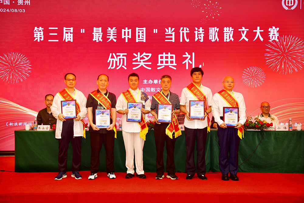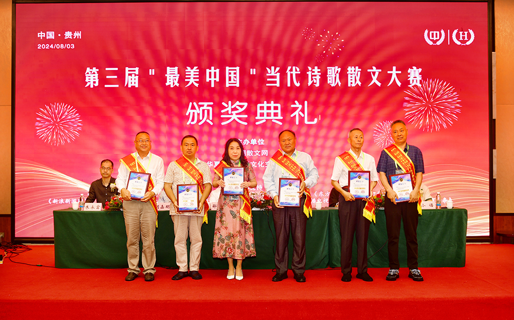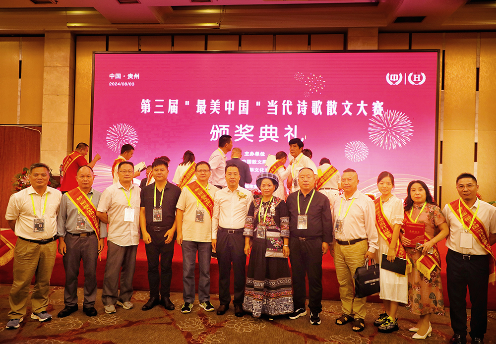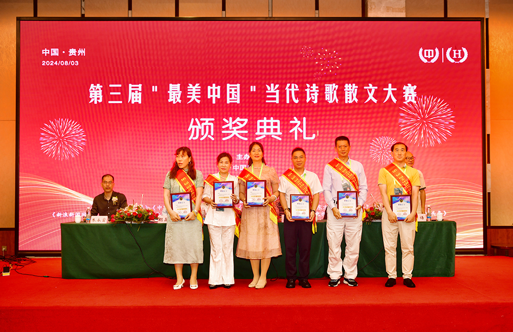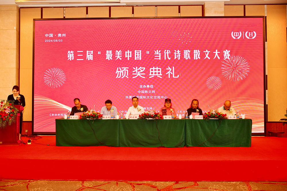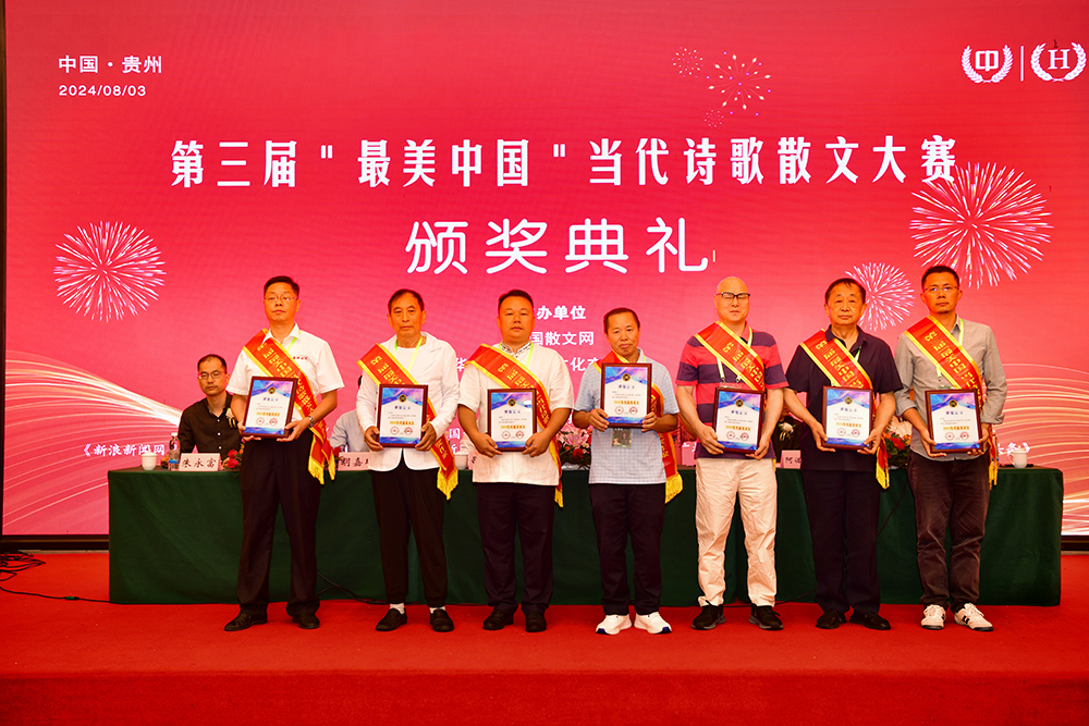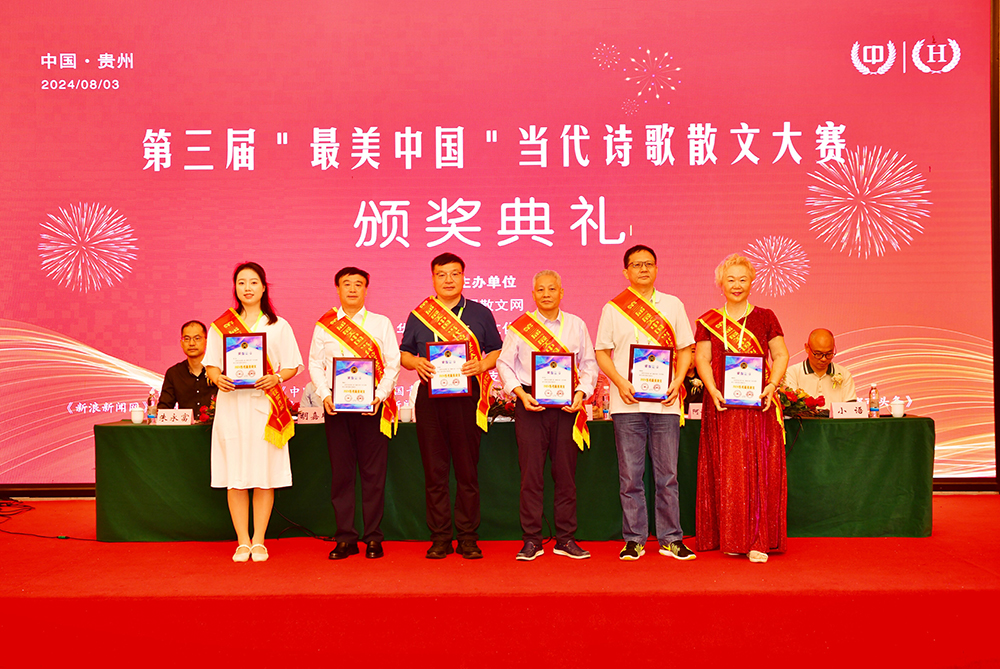 中国散文网讯: 盛夏时节的贵州,清凉如春,山水绝美。由中国散文网、华夏博学国际文化交流中心主办的第三届“最美中国”当代诗歌散文大赛颁奖大会系列活动,8月2日—5日在爽爽的贵州举行,相关领导专家和来自全国各地和美国的获奖作家汇聚在这诗意的大地,以文学的名义,共同见证一场诗文的盛宴和文化的传承。