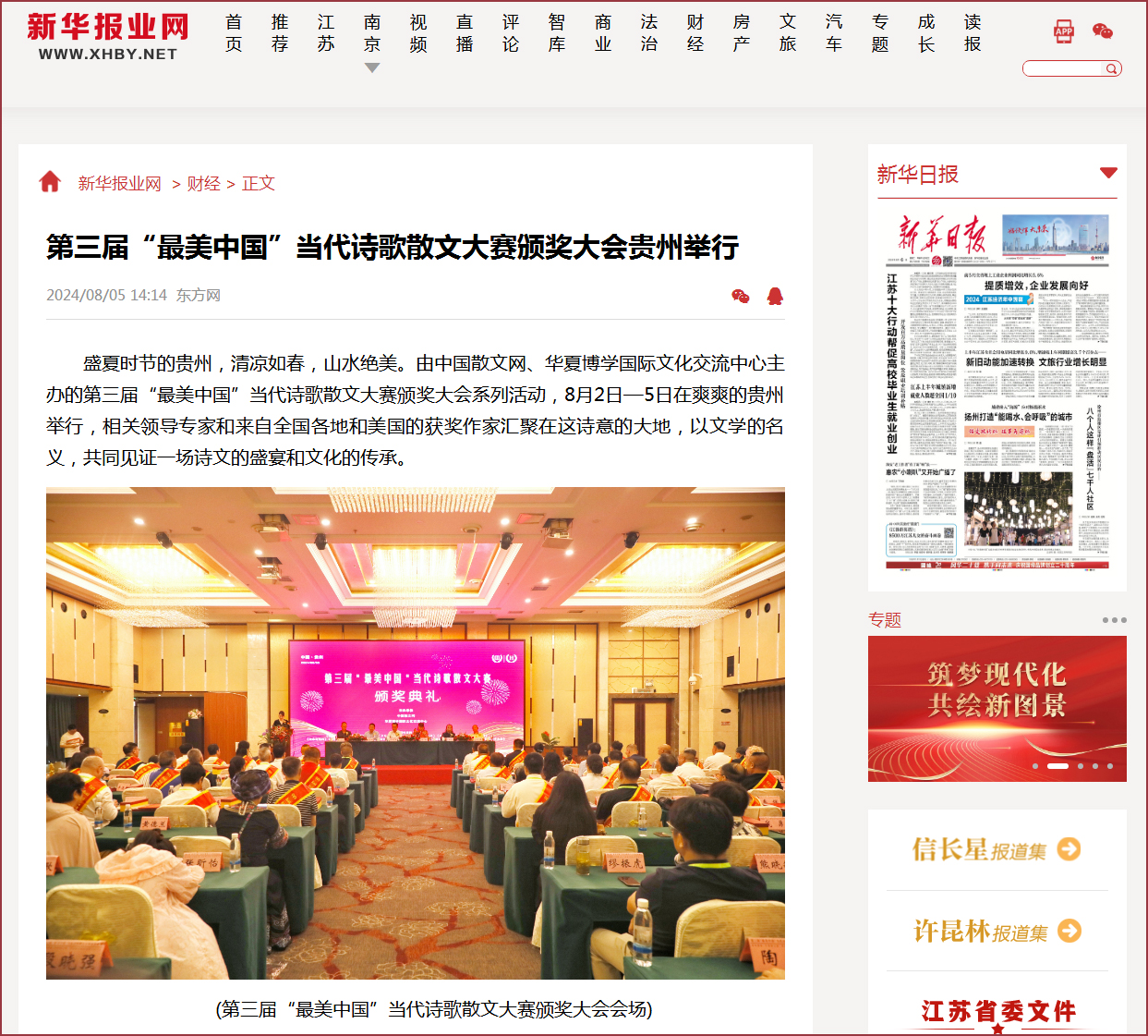 第三届“最美中国”当代诗歌散文大赛颁奖大会得到《美丽中国影像报》的支持!