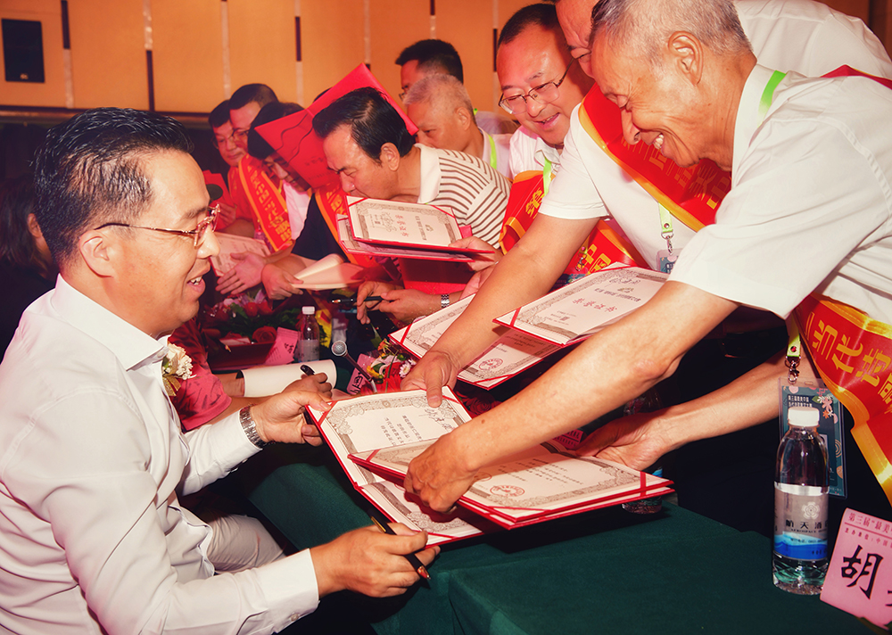 与会领导专家为获奖者签名合影