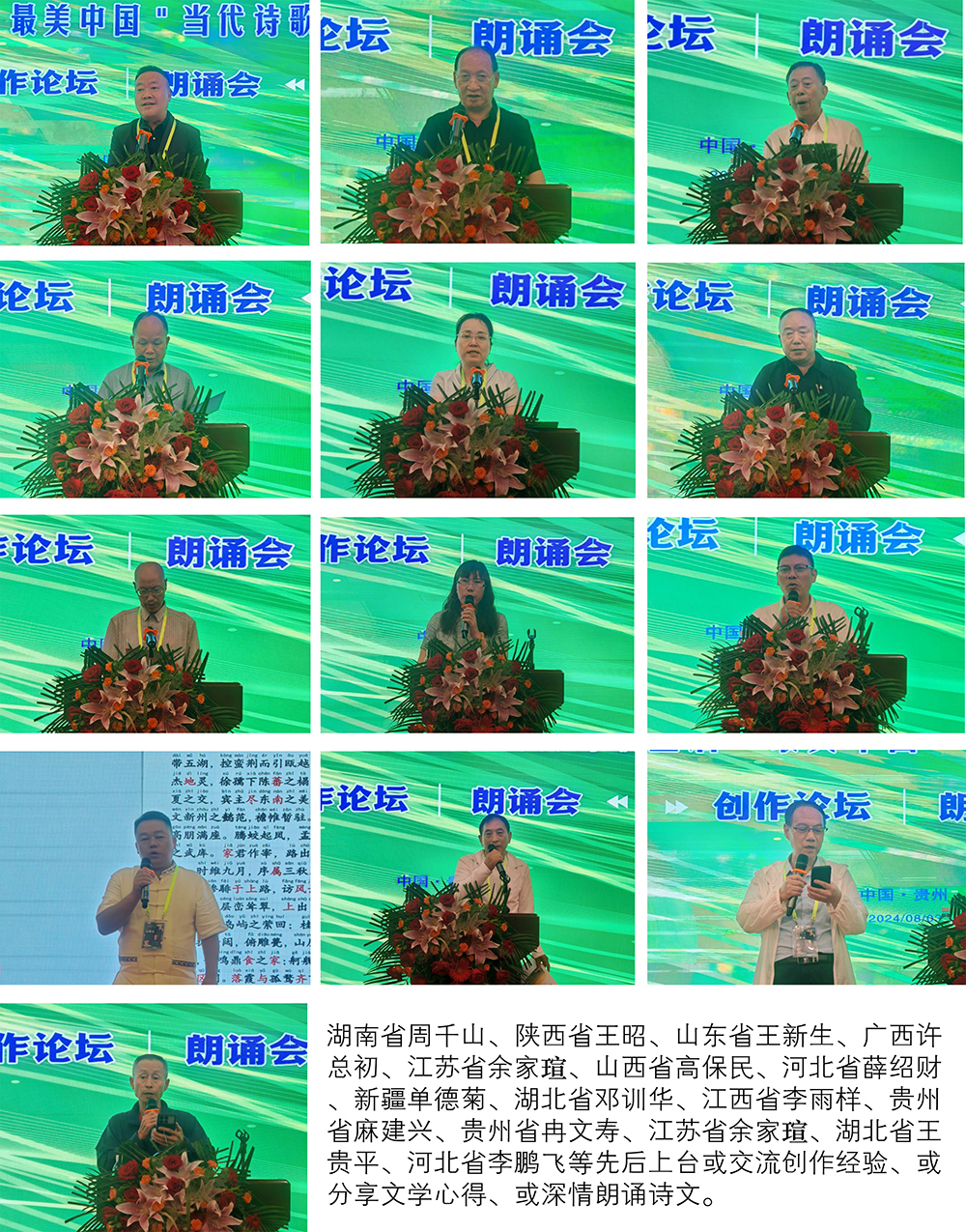 山河壮丽多奇彩,中华文化传千古。8月3日晚上,组委会举行了第三届“最美中国”当代诗歌散文创作论坛和第三届“最美中国”当代诗歌散文朗诵会。湖南省周千山、陕西省王昭、山东省王新生、广西许总初、江苏省余家瑄、山西省高保民、河北省薛绍财、新疆单德菊、湖北省邓训华、江西省李雨样、贵州省麻建兴、贵州省冉文寿、江苏省余家瑄、湖北省王贵平、河北省李鹏飞等先后上台或交流创作经验、或分享文学心得、或深情朗诵诗文。