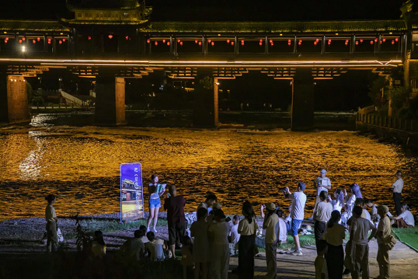 在黎滩河畔五彩的夜色中,《星火》文青们面朝张恨水旧居席地而坐,把《星火》读给当地市民和游客听,并邀请游客献声朗读。先后有16名路人融入诗意而梦幻的氛围,朗读《星火》诗文并分享自己与文学的情缘。黎滩河也毫不吝啬自己的热情,一直“哗哗”地使劲鼓掌。