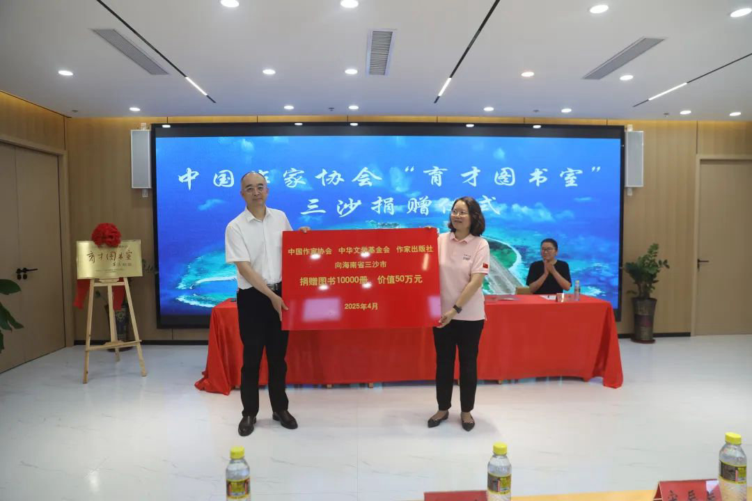 4月23日是第三十个世界读书日,中国作家协会、中华文学基金会和作家出版社在三沙开展“育才图书馆”捐赠仪式并为“育才图书室”工程项目揭牌。中国作协党组成员、副主席、书记处书记吴义勤,三沙市委副书记、宣传部部长江南参加捐赠仪式。