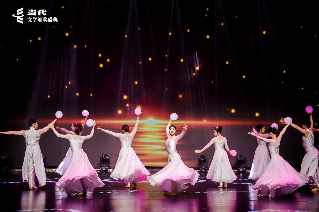 专门根据五佳作品内容编排的舞蹈,分别引导获奖作家走到舞台中心、聚光灯下。在获奖感言中,毕飞宇幽默回顾了十六年前获得这一奖项的经历,表达与本次获奖小说《欢迎来到人间》出版方人民文学出版社的深厚情谊;陈彦表示,对创作者来讲,最重要的还是生活,所有写作的成绩都是生活的恩赐;张平表示,任何写作,只要能站在人民的立场上,那么作品就能得到老百姓的支持;李宏伟提出了自己的创作思考,认为文学就是提供“可能”的一种艺术方式,而变化总是在转换思路之后到来;因故未能到场的获奖者贾平凹也以视频方式分享了心得,表示往后的写作还是要关注现实、研究现实、以文学来反映现实,这是时代、国情赋予自己的责任,也是一个作家生存的意义。