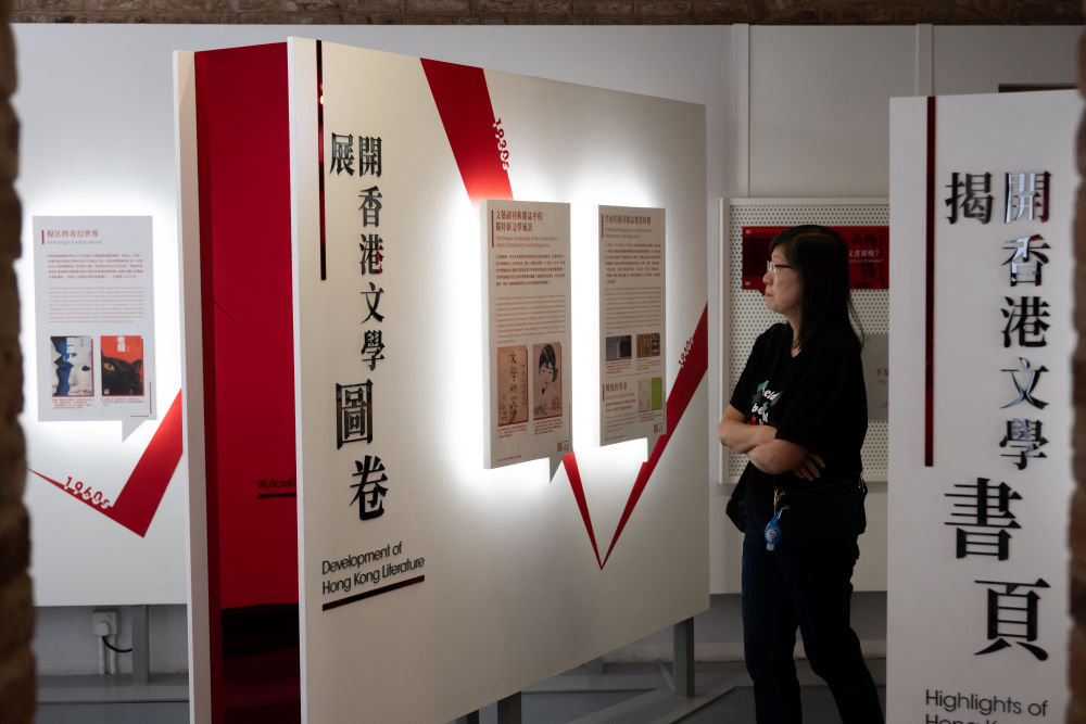 5月29日,一名女士在香港文学馆参观