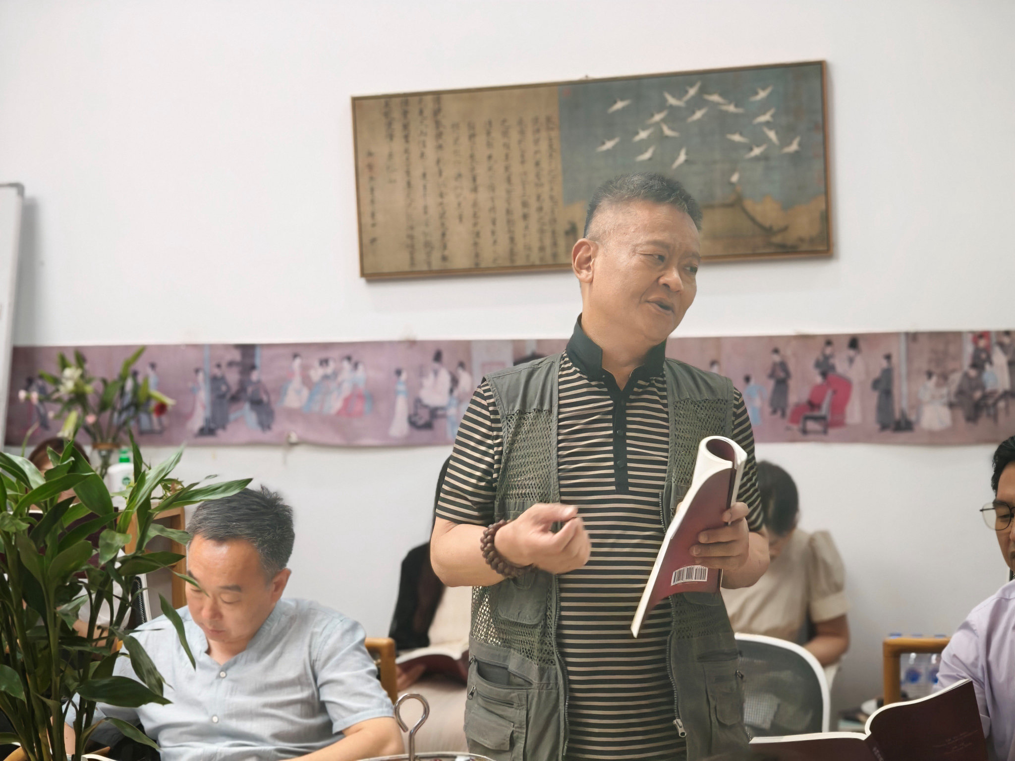 诗人刘剑朗诵了自己的诗歌《雨滴声穿透深夜的薄幕》,并对诗选出版表示祝贺。