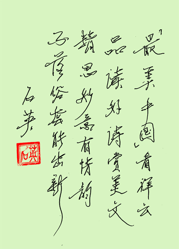 中国散文学会名誉会长、《人民日报》社原文艺部主任 石 英 题词