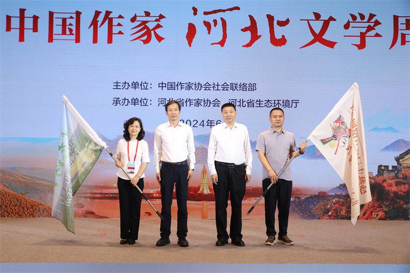 赵宪伟、关仁山分别向生态河北——全国知名作家河北行主题创作采风活动、河北网络作家行走燕赵——非遗主题创作活动授旗。