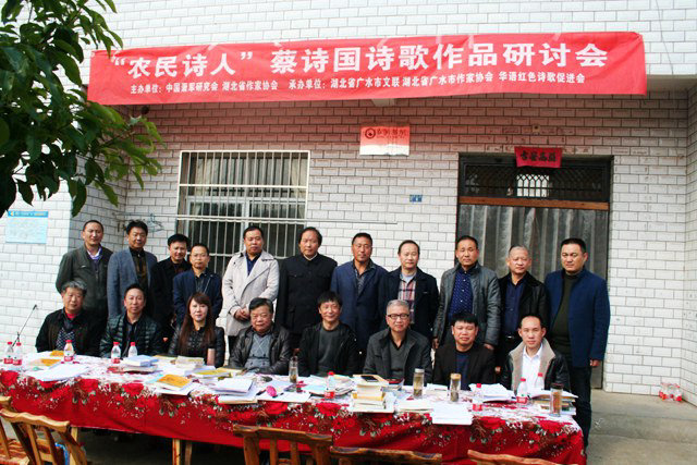 2017年11月15日,由中国萧军研究会、湖北省作家协会主办,广水市文联、广水市作家协会、中国萧军研究会华语红色诗歌促进委员会承办的“农民诗人蔡诗国诗歌作品研讨会”在蔡家冲蔡诗国的农家小院里举行,著名诗人、国务院参事忽培元,中国萧军研究会法人、常务副会长萧鸣等发来长贺信,著名诗人、中国作家出版集团胡松夏主持,著名作家韩永明、胡翔、佟鑫、蔡秀词、熊欣、黄海卿、熊复名、黄刚桥、程仁全、许庆胜、李学利、杨右祥、刘军民、蔡诗国、蔡诗华、蔡曙东、蔡建东等20多位作家诗人、读者出席活动并发了言。新华社、《人民日报·海外版》《中国艺术报》《文学报》《作家报》《湖北作家》《湖北日报》《长江日报》《农村新报》《随州日报》等媒体、网络自媒体上百家先后报道,“农民诗人蔡诗国诗歌现象” 初见端倪。
