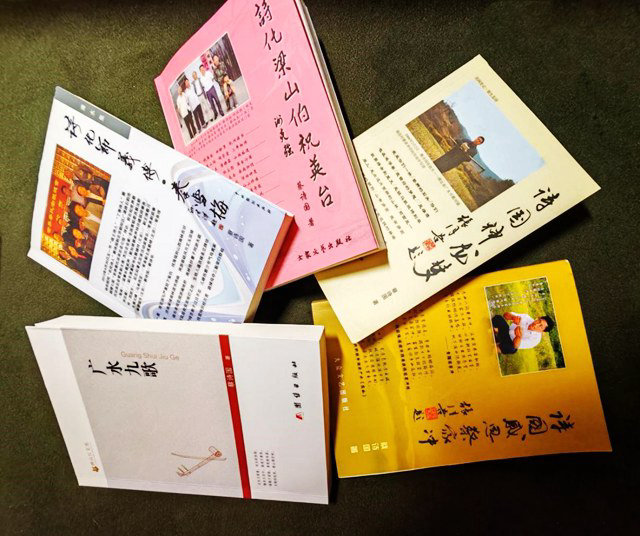 附①图说:蔡诗国先后创作出版了6部诗集《诗国神龙梦》《诗国感恩蔡家冲》《诗化梁山伯祝英台》《诗化节义传·秦雪梅》《广水名臣·诗化明朝谏官杨涟》《广水九歌》等;