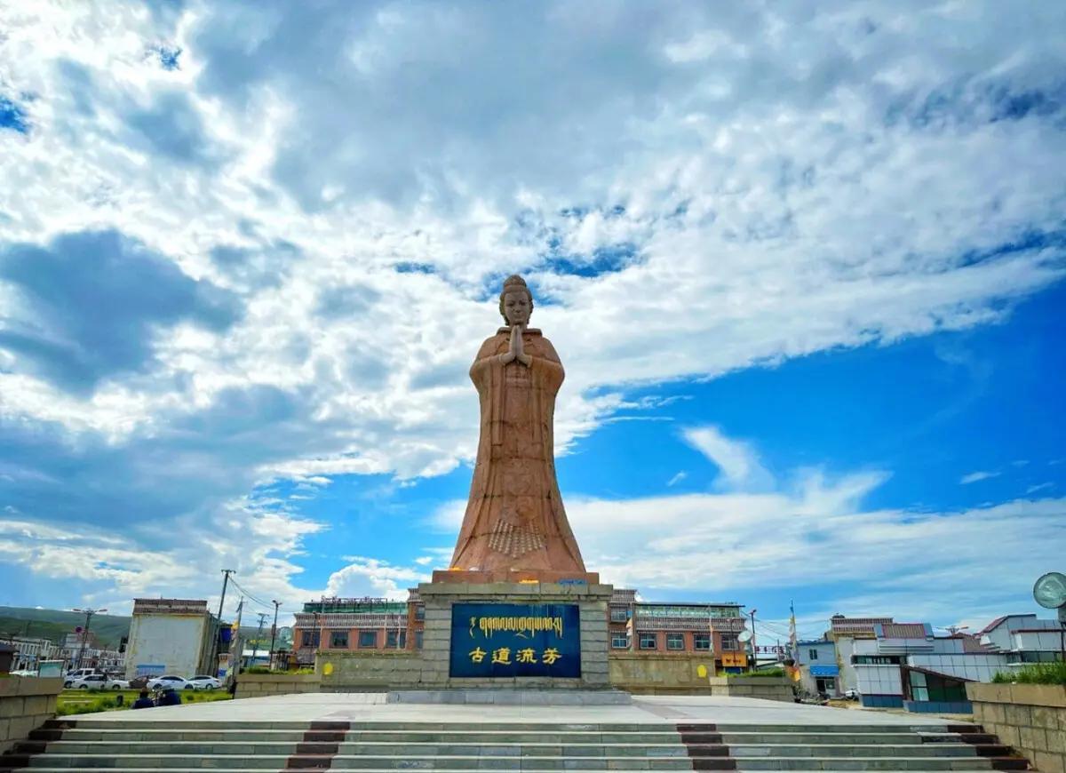 在镇中心广场上,文成公主的雕像静静矗立。她仪态端庄,面带微笑,双手合十,仿佛在诉说着那段远嫁西藏的传奇故事。唐朝时,文成公主为了汉藏的友好和平发展,背负使命,远嫁西藏。在赴藏途中,达日月山时,公主思念远在长安的父母及家乡,泪流不止,回首东望不见长安。公主的泪便汇成了这条倒淌的河,伴着她随后的路途向西而去,最后注入青海湖。这凄美的故事让倒淌河充满了神秘的色彩,也让我们对它有了更深的情感共鸣。