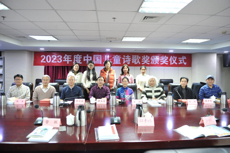 12月29日下午,由《东方少年》杂志、北京师范大学中国当代新诗研究中心、青海人民出版社主办的2023年度中国儿童诗歌奖颁奖仪式在北京文联六层会议室举行。金本、师力斌、谭五昌、彭俐、戚万凯、裴郁平、荒林、胡建文、雪野、冰峰、夏海涛、林勇鸿、布木布泰、崔翌、袁翔、管朕、张帆等儿童诗人、诗歌评论家及儿童文学刊物编辑与会。会议由首都师范大学教授、2023年度中国儿童诗歌奖评委荒林主持。