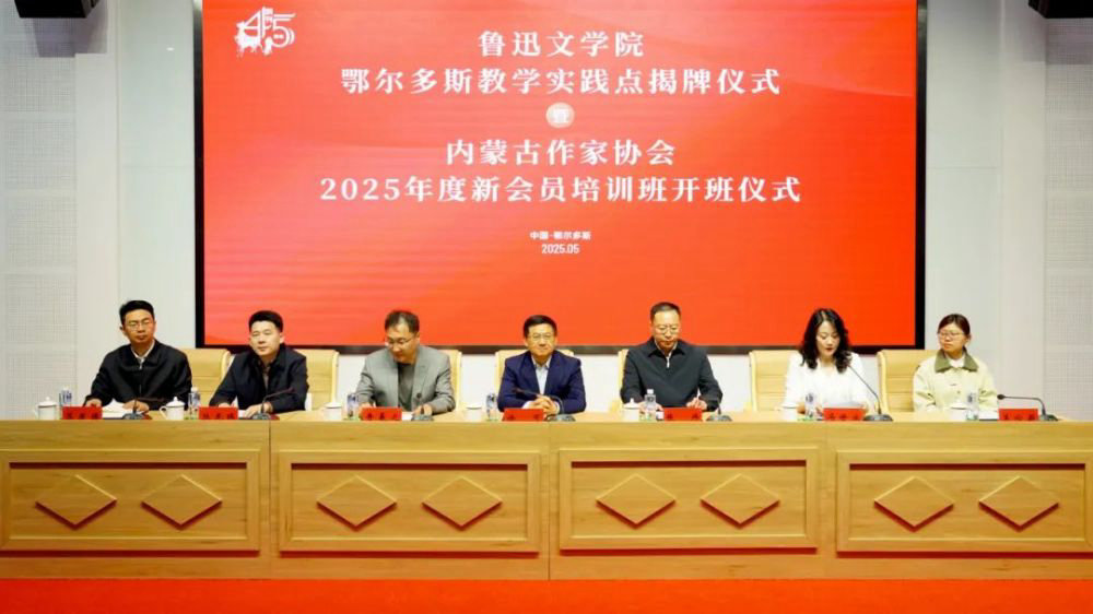 近日,鲁迅文学院鄂尔多斯教学实践点揭牌仪式暨内蒙古作家协会2025年度新会员培训班开班仪式在鄂尔多斯美术馆举行。活动由鲁迅文学院、内蒙古自治区文学艺术界联合会、内蒙古作家协会、鄂尔多斯市文学艺术界联合会主办,鄂尔多斯文学杂志社、康巴什区文学艺术界联合会、鄂尔多斯市作家协会承办。鲁迅文学院、内蒙古文联、鄂尔多斯市相关领导及负责人出席活动,内蒙古作家协会2025年新入会会员、《鄂尔多斯》《阿拉腾甘德尔》两刊本土骨干作者、鄂尔多斯市作家协会及文艺评论家协会会员代表等参与。此次教学实践点的揭牌与新会员培训班的同步启动,是今年两刊创刊45周年的重要活动。