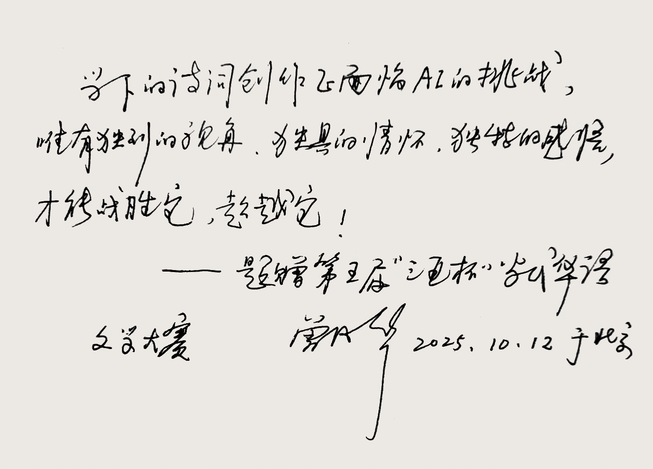 艾青文学院院院长 曾凡华 题词