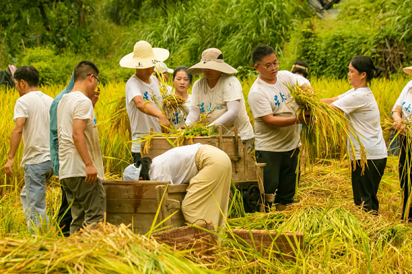 第五届“稻田写诗”因村外野猪祸害,收成大打折扣。第六届“稻田写诗”农耕体验笔会插秧活动之后,资溪驿加强了田间管理,入秋之后对野猪采取了多种预防措施,这次秋收共收获700余斤稻谷。