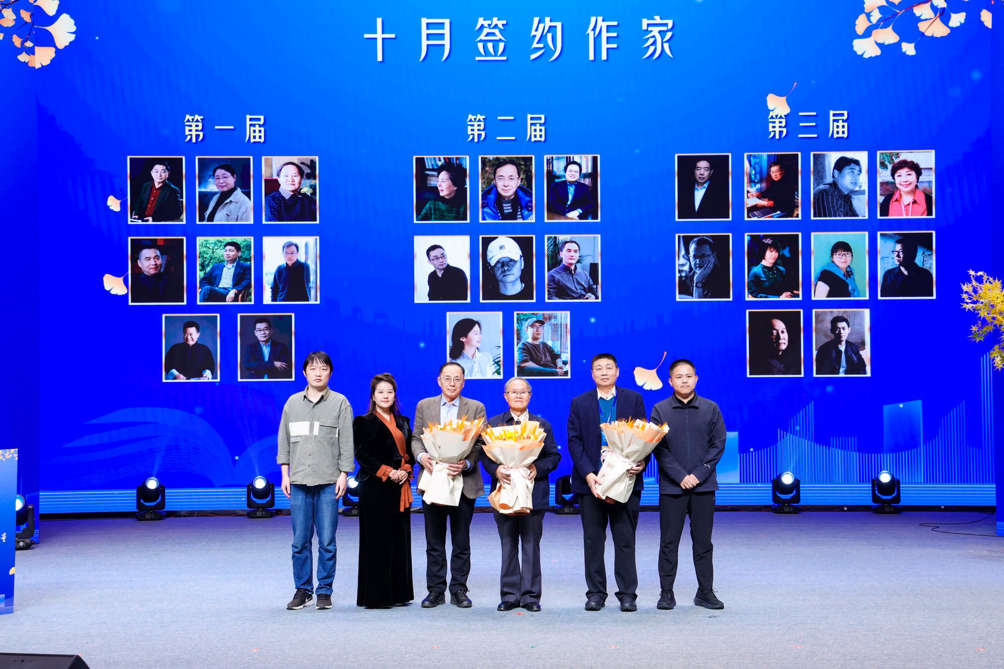 刘庆邦、关仁山、范稳等“十月签约作家”代表接受“《十月》·共读派”读者代表的献花