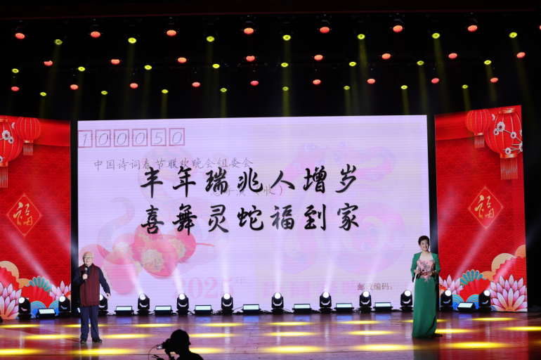 佳节添古韵,喜气满乾坤。2025第九届中国诗词春节联欢晚会,由中国文促会诗工委主任、《诗词之友》主编张脉峰担任总策划、总导演。正值“春节”习俗申遗成功之际,在欢乐喜庆中与经典相遇,殷之光、李元华、常江、孔孔成、张妍、胡林妍、李军、柏荷、师大江、赵泉尧、汪晓熙、周鼎棋、张松松、王紫萱、徐艺豪、胡香凝、孟令启、邱丽晔、刘桂芬、毛帼英、徐燕、刘欣、贾惠英、徐辉、柳清芬、刘春华、郑伟达、豆万龙、朱建军、张毅、邵建国、杨喜来等艺术家登上诗词春晚舞台,激情澎湃,倾情演绎,歌曲《诗词迎春曲》、情景表演《邮票上的春联》、京剧《春江花月夜》、相声《大话诗词》、书春送福等原创节目和朗诵、合唱、古琴、楹联等艺术形式完美融合,奉献给大众一场经典诗词文化盛宴。演绎经典诗篇,感受诗词之美,品味诗和远方,传统与现代交相辉映,彰显中华传统文化的强大精神力量,表达对幸福生活的美好追求,诗花怒放,春意盎然,共迎2025乙巳新春。(文/梦龙)