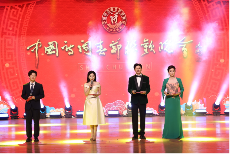 河山添锦绣,星光映万家。由中华诗词发展基金会、中国文化艺术发展促进会、北京诗词之友文化发展中心等联合举办的2025第九届中国诗词春节联欢晚会,1月6日在北京举行。中宣部原副部长、中国文联原党组书记、中国关心下一代工作委员会常务副主任胡振民题写“时代开新曲,诗词报好春”贺联,专家学者钟振振、陈晋、周文彰、任海泉、杨晓阳、张行等视频祝贺。中华诗词发展基金会副理事长毛炳等嘉宾出席活动,诗词、楹联、书画、曲艺界人士和诗词爱好者近千人观看了演出。