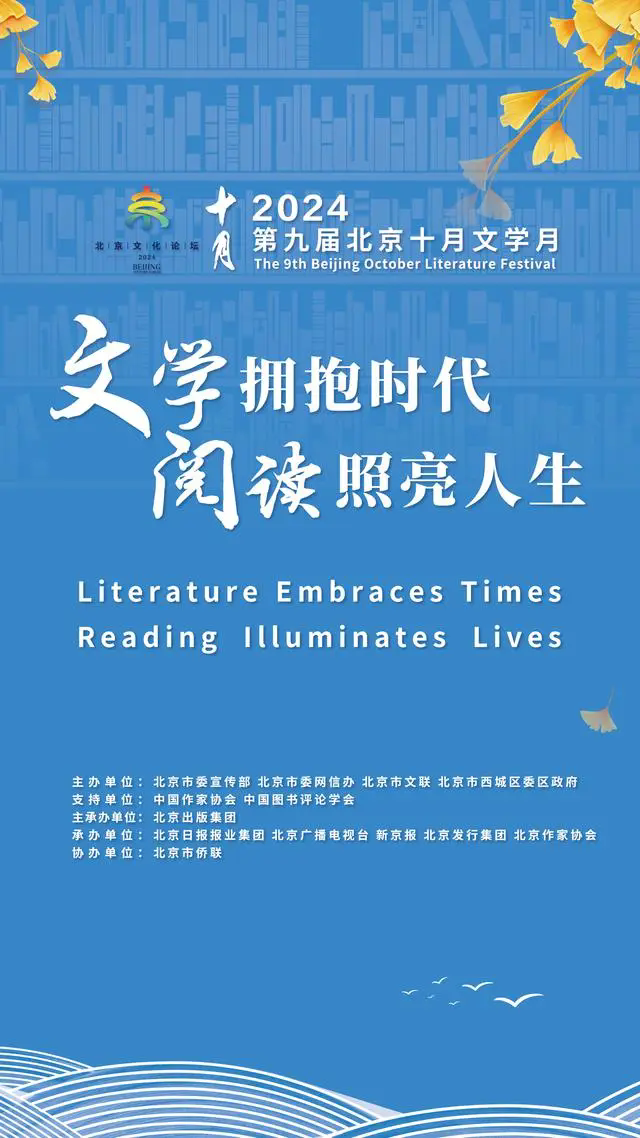 第九届十月文学月由北京市委宣传部、北京市委网信办、北京市文联、北京市西城区委区政府主办,中国作家协会、中国图书评论学会支持,北京出版集团主承办,北京日报报业集团、北京广播电视台、新京报、北京发行集团、北京作家协会承办,北京市侨联等单位协办。