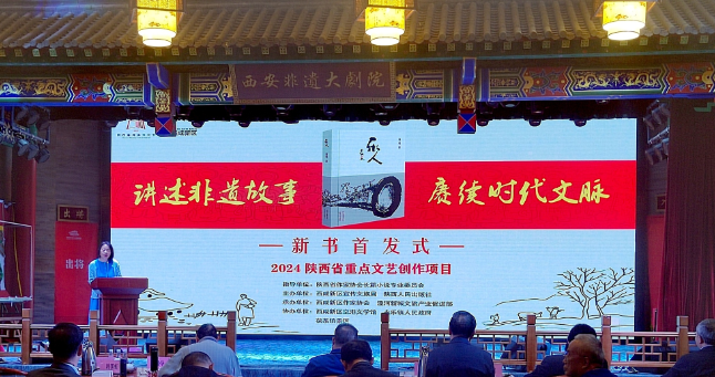 仪式现场,陕西非遗唢呐传承人吕海东和搭档进行了唢呐曲目的演奏,全场来宾沉浸在非遗文化的独特魅力中。贾平凹、白描等一众作家学者致贺信贺电,5位陕西文学专家发表了小说读后感,并对小说的后续完善和优化调整提出意见,来自西咸新区的4位代表用地道纯正的陕西方言现场复刻还原小说片段。