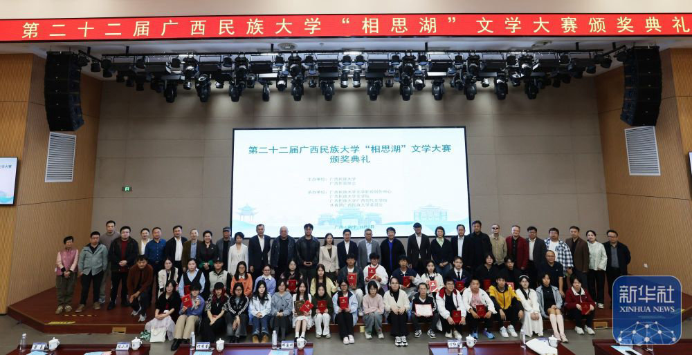 第二十二届广西民族大学“相思湖”文学大赛颁奖典礼11月2日在相思湖校区文化研习基地报告厅举行。本次活动由广西民族大学和广西作家协会联合主办,广西民族大学文学影视创作中心、文学院、广西现代文学馆、校团委共同承办。