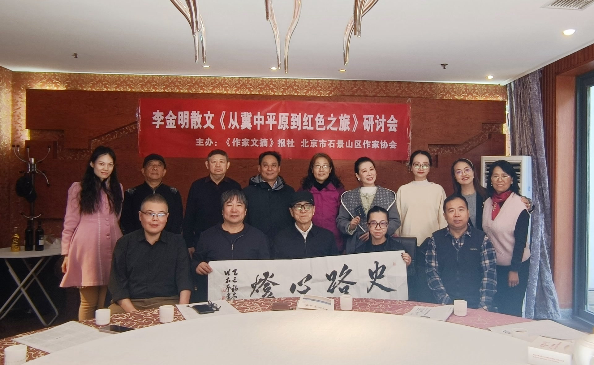 11月16日,由《作家文摘》报社和北京市石景山区作家协会共同举办的“李金明散文《从冀中平原到红色之旅》研讨会”在北京市石景山区举行。《作家文摘》副主编魏蔚,北京市石景山区作协主席李金明及副主席、副秘书长、会员骨干等20余人参加。